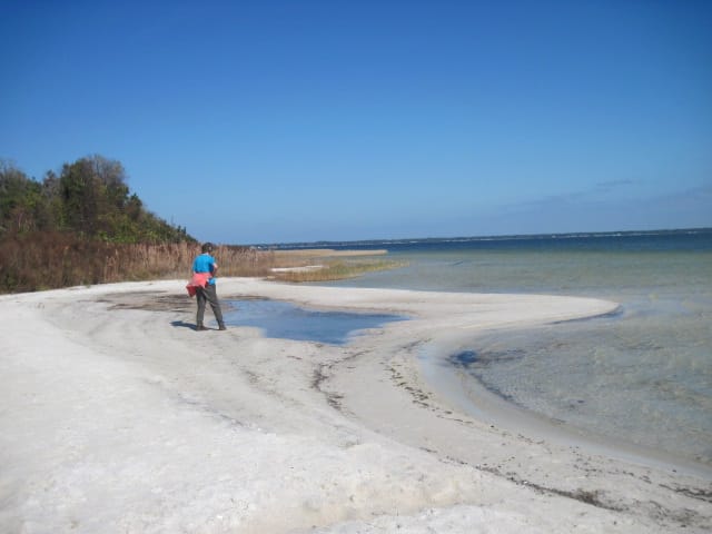 “Sorry the margaritas didn’t make it,” I said, to some laughs. A seaplane took off in front of us. An osprey cruised by. Everyone relaxed. Nothing like a beach along a hike, especially a surprise beach. Serenaded by Jimmy Buffet.