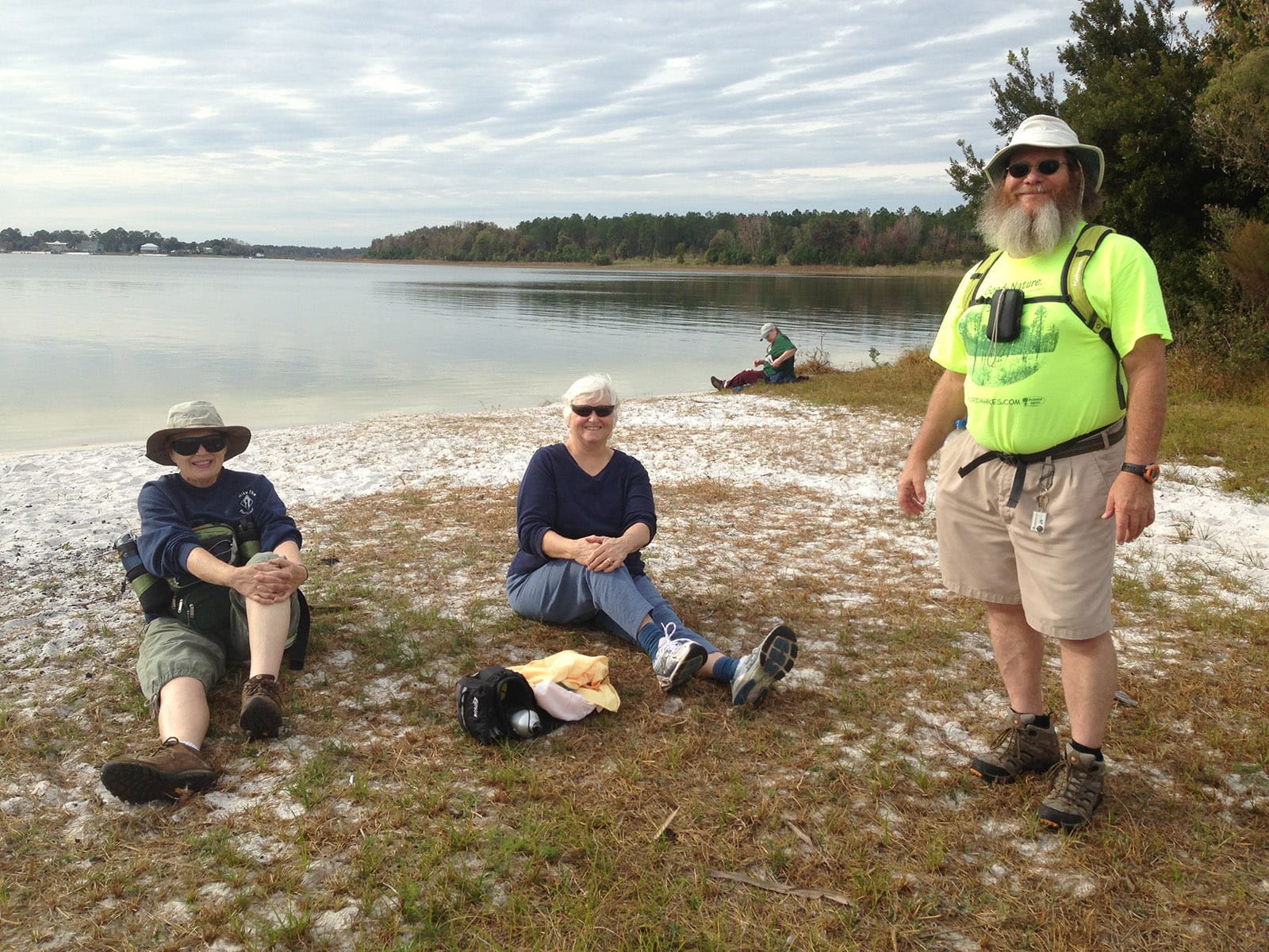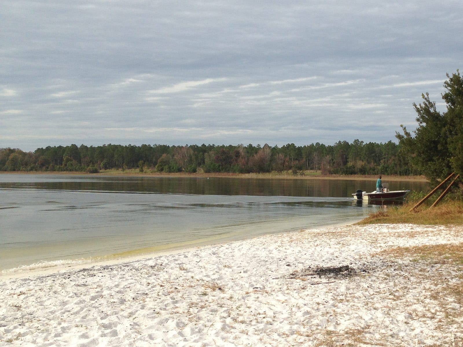 The sweep of white sand was so inviting some folks took their shoes off and waded out into the lake – it was warm that afternoon. An angler was casting in the shallows, and a boat was beached at the end of the spit. From the boat, strains of “Margaritaville” filled the air.
