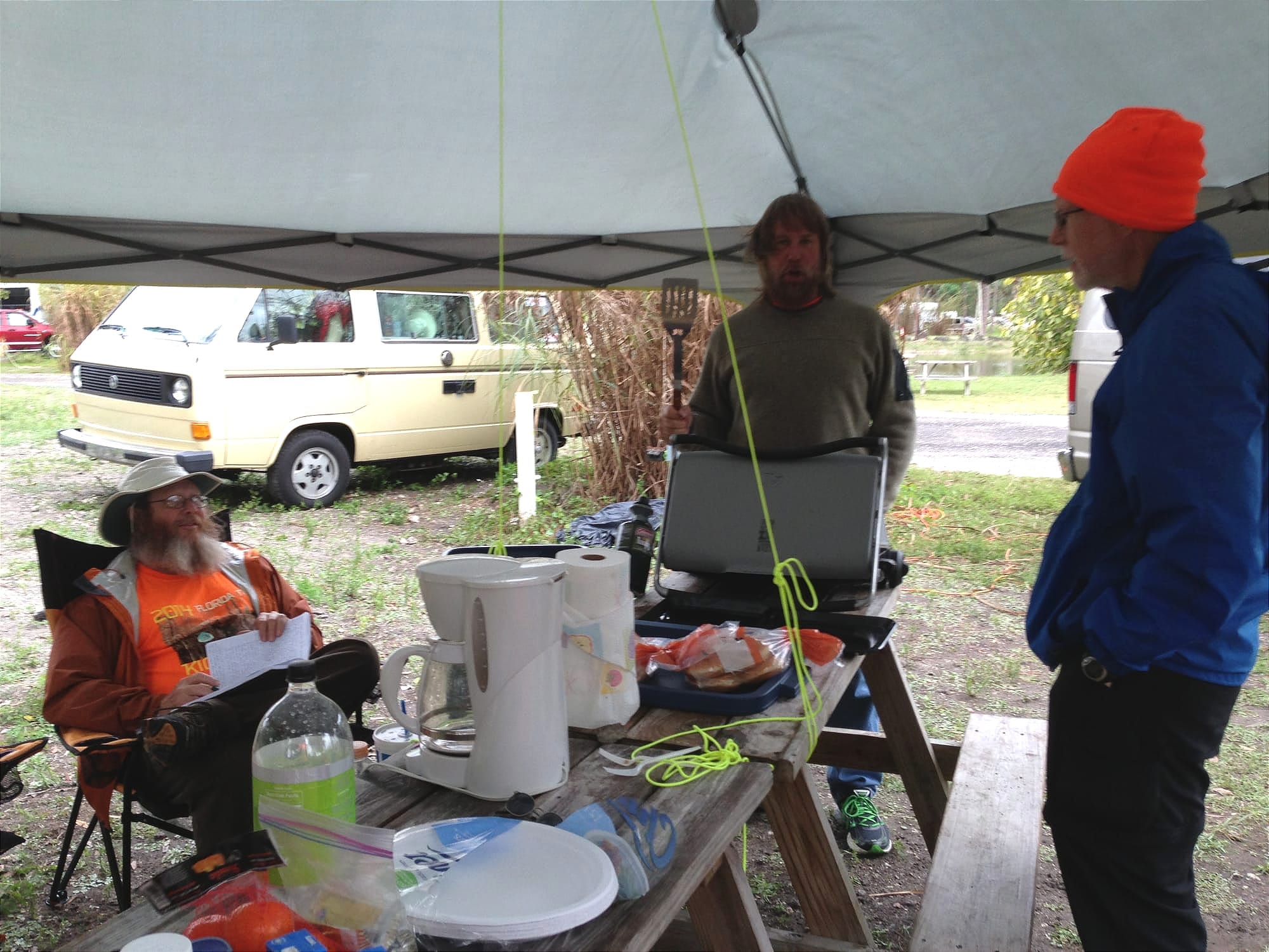 Our friend Phyllis, aka Shortcut, dropped off Chase (from Virginia), Acorn (from Illinois), and Iwalk (from St. Augustine, but with recent Colorado roots). She'd picked two of them up from the airport in Miami.