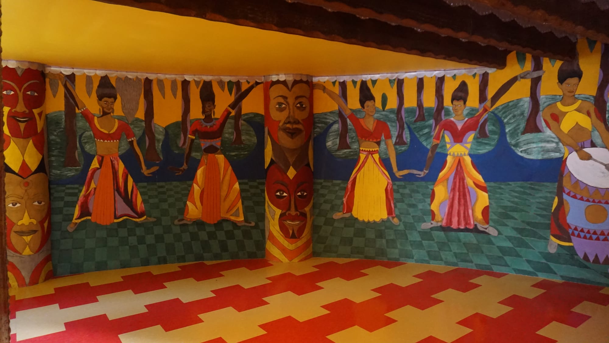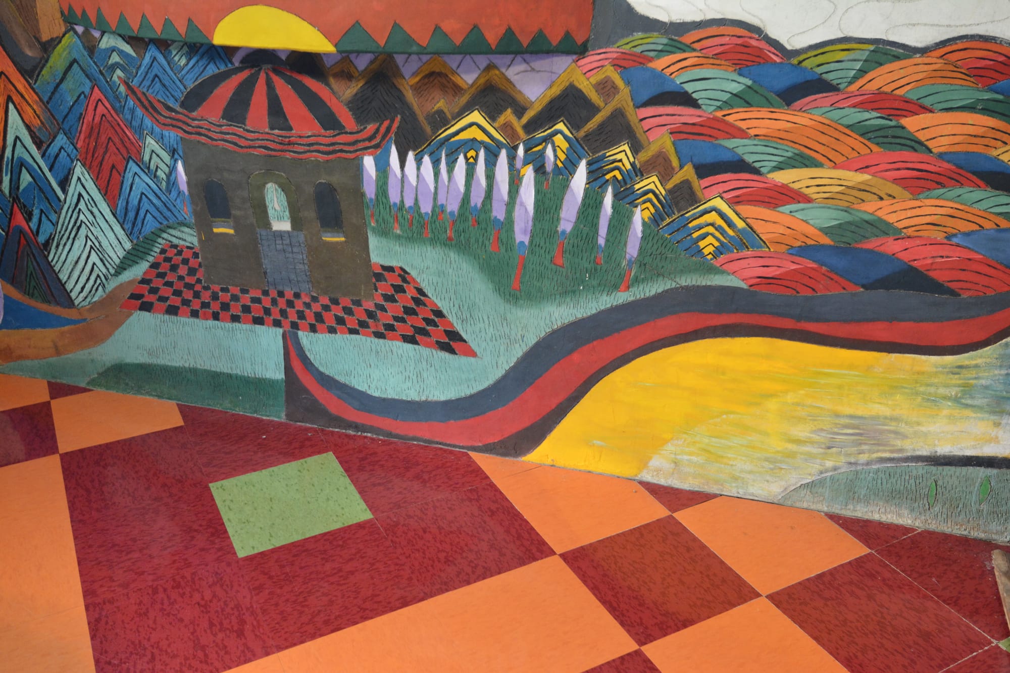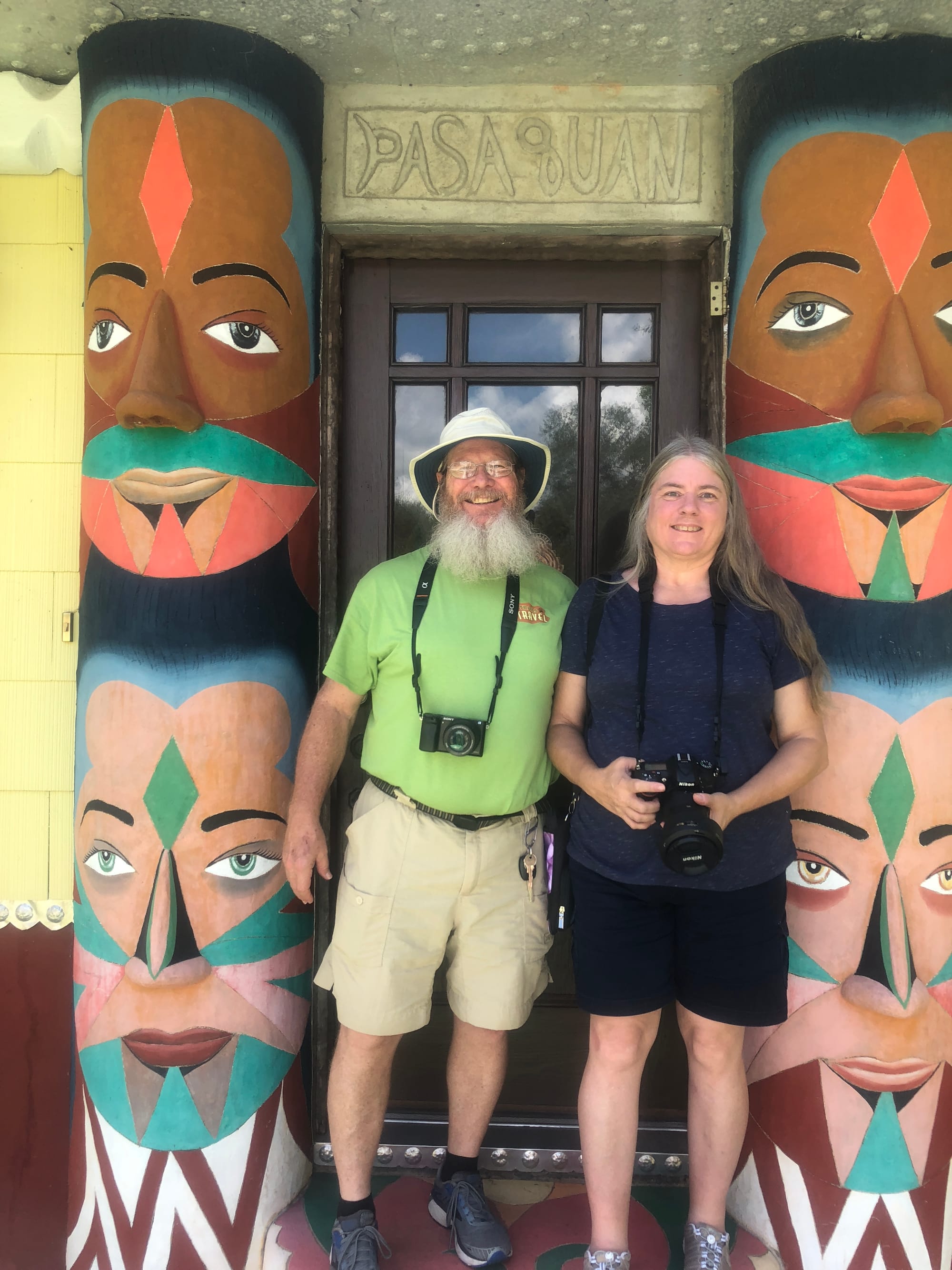 We were fortunate to enjoy a tour with a docent who often dresses as Eddie would have when he and his acolytes inhabited and built this unique work of art. The colors and textures are earthy, repainted regularly to their original vibrancy.