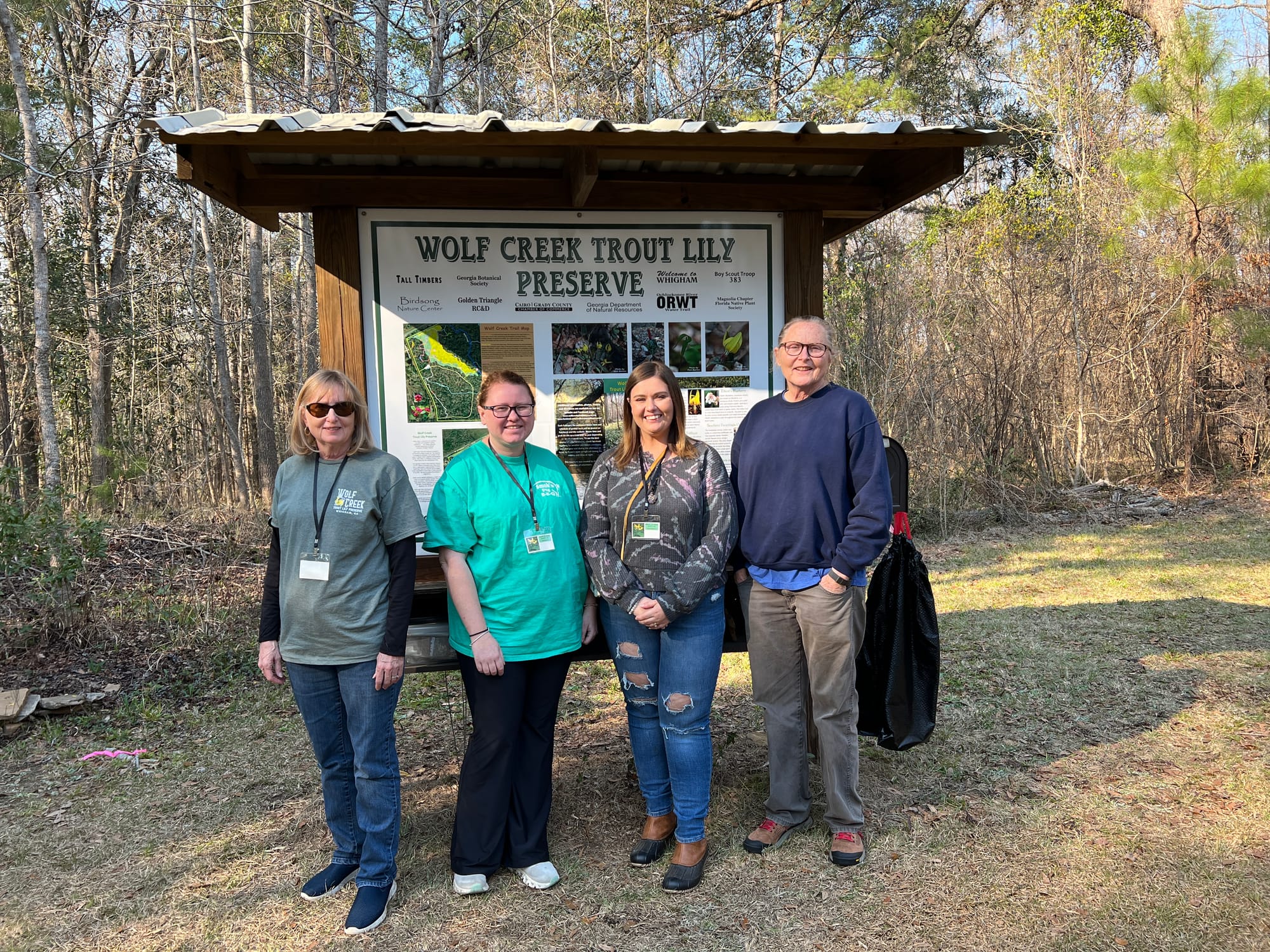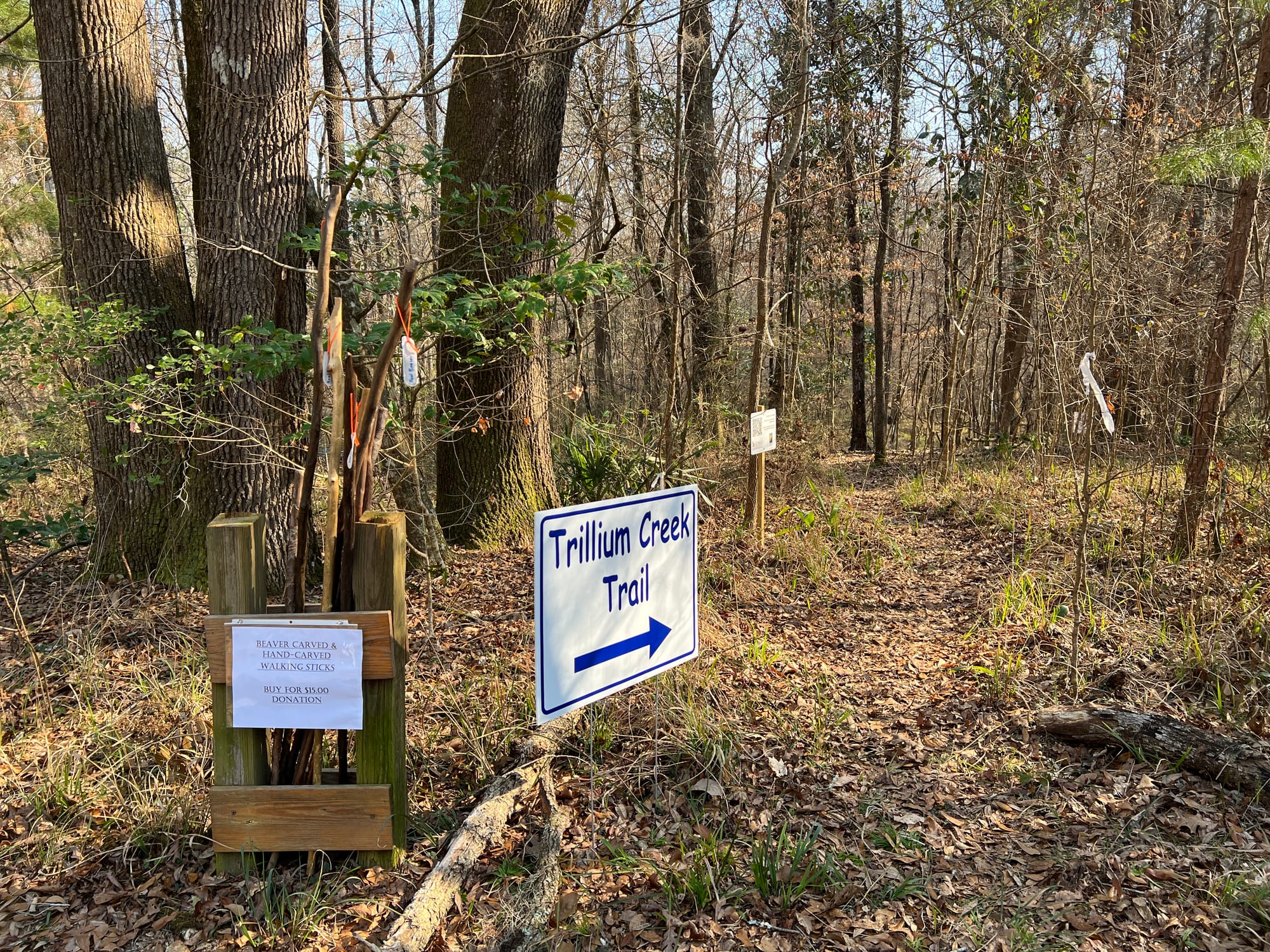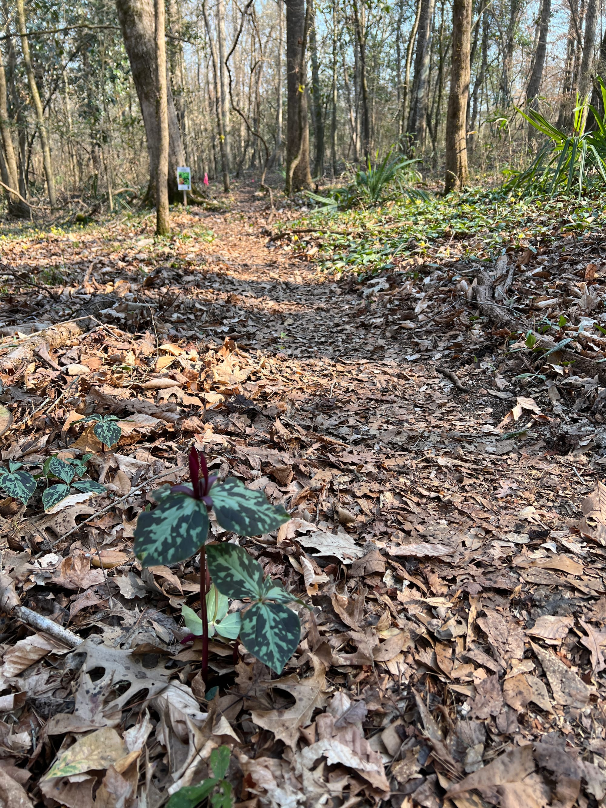 A "pop up" trail system with interpretation of habitats is set up each season by volunteers from the Florida Native Plant Society Magnolia Chapter. Trails are signposted and flagged, meandering off in two directions beyond the main loop to enable a couple hours of hiking on sometimes steep terrain.